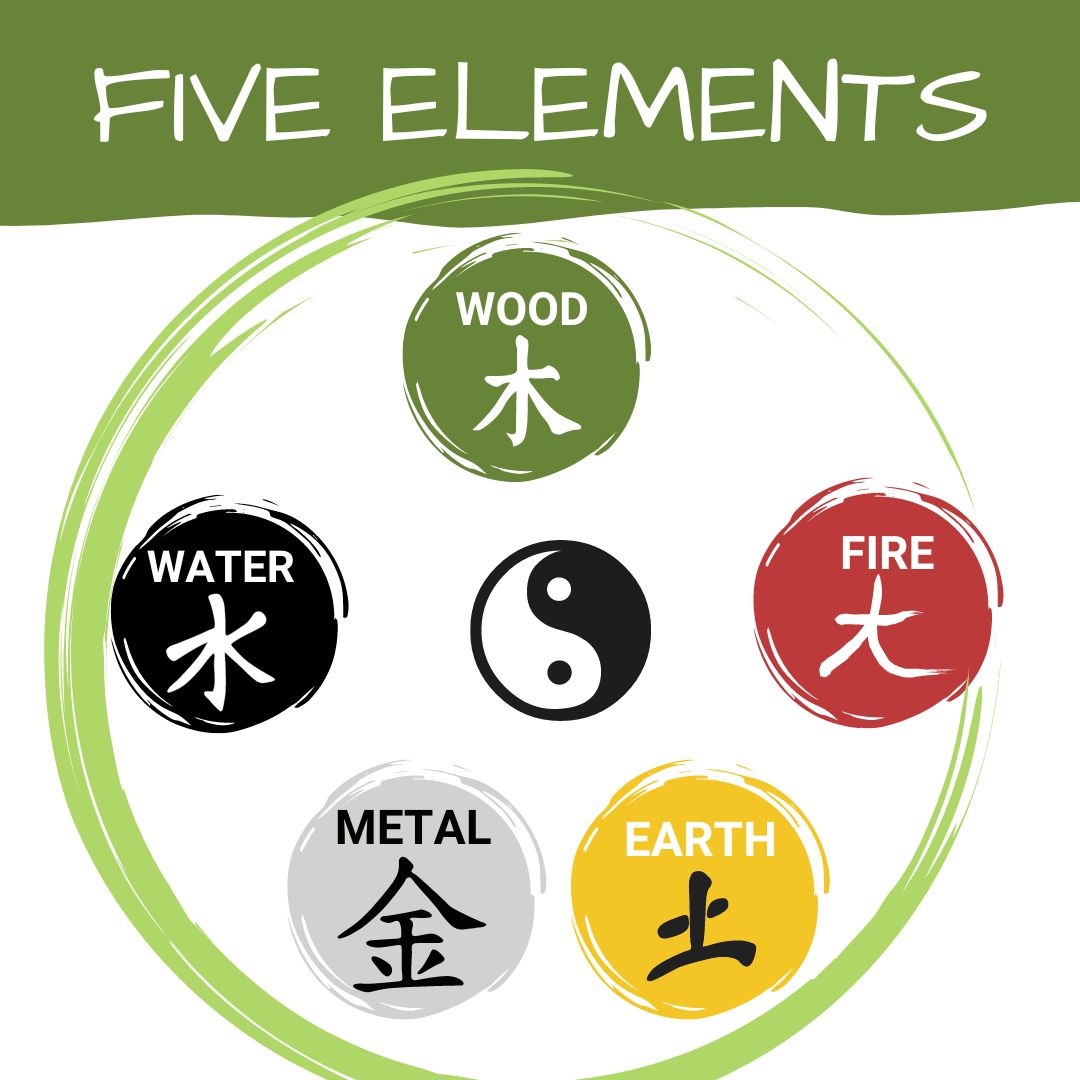 The Five Elements in TCM are Wood, Fire, Earth, Metal and Water.