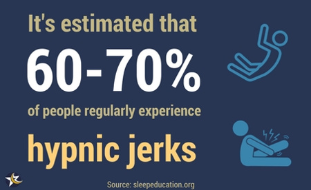 “Hypnic jerks, or sleep starts, are normal physiological events occurring at the transition from wakefulness to sleep, often associated with sensory phenomena, such as a feeling of falling, unexplained alarm or fear, inner electric shock or light flash.” – Sciencedirect.com